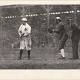 Detroit Tiger Davy Jones at bat on opening day. Chicago White Sox catcher Billy Sullivan with umpire behind. Typed on label on mat back: "Opening day, Bennett Park, 1911. Tigers vs. White Sox. Davy Jones at bat. Billy Sullivan catching. Game played in ...